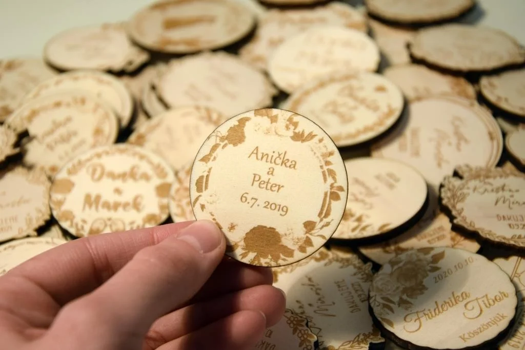 Všetky magnetky vyrábame pre Vás na mieru, preto pri objednávke nezabudnite napísať menáa dátum Vašej svadby.
