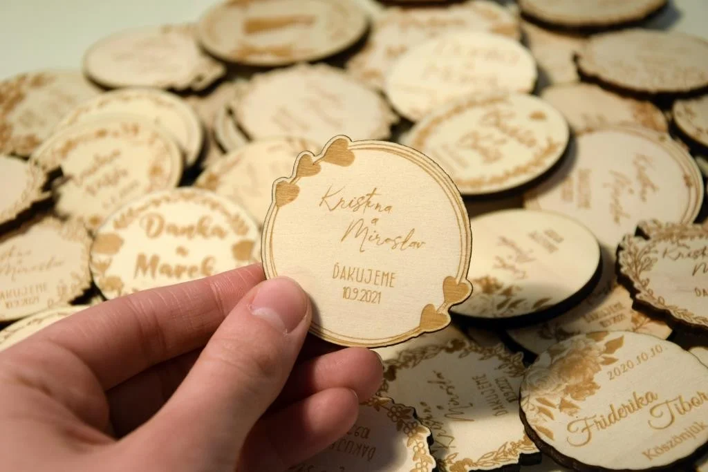 Všetky magnetky vyrábame pre Vás na mieru, preto pri objednávke nezabudnite napísať menáa dátum Vašej svadby.