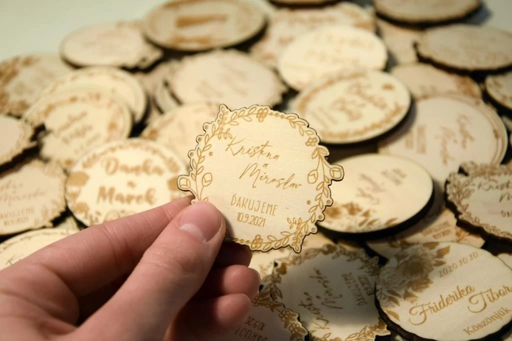 Všetky magnetky vyrábame pre Vás na mieru, preto pri objednávke nezabudnite napísať menáa dátum Vašej svadby.