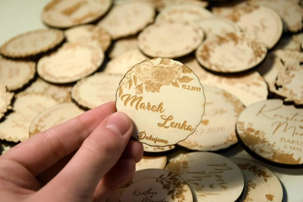 Všetky magnetky vyrábame pre Vás na mieru, preto pri objednávke nezabudnite napísať menáa dátum Vašej svadby.