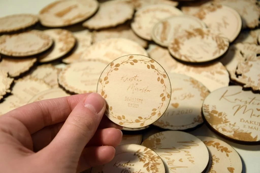 Všetky magnetky vyrábame pre Vás na mieru, preto pri objednávke nezabudnite napísať menáa dátum Vašej svadby.
