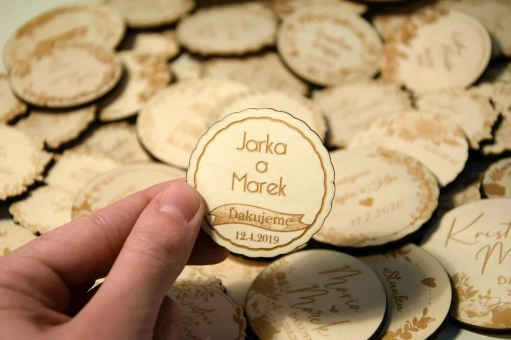 Všetky magnetky vyrábame pre Vás na mieru, preto pri objednávke nezabudnite napísať menáa dátum Vašej svadby