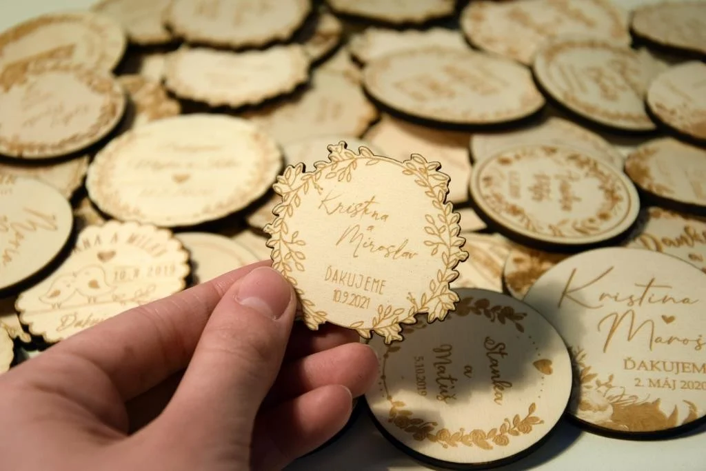 Všetky magnetky vyrábame pre Vás na mieru, preto pri objednávke nezabudnite napísať menáa dátum Vašej svadby.
