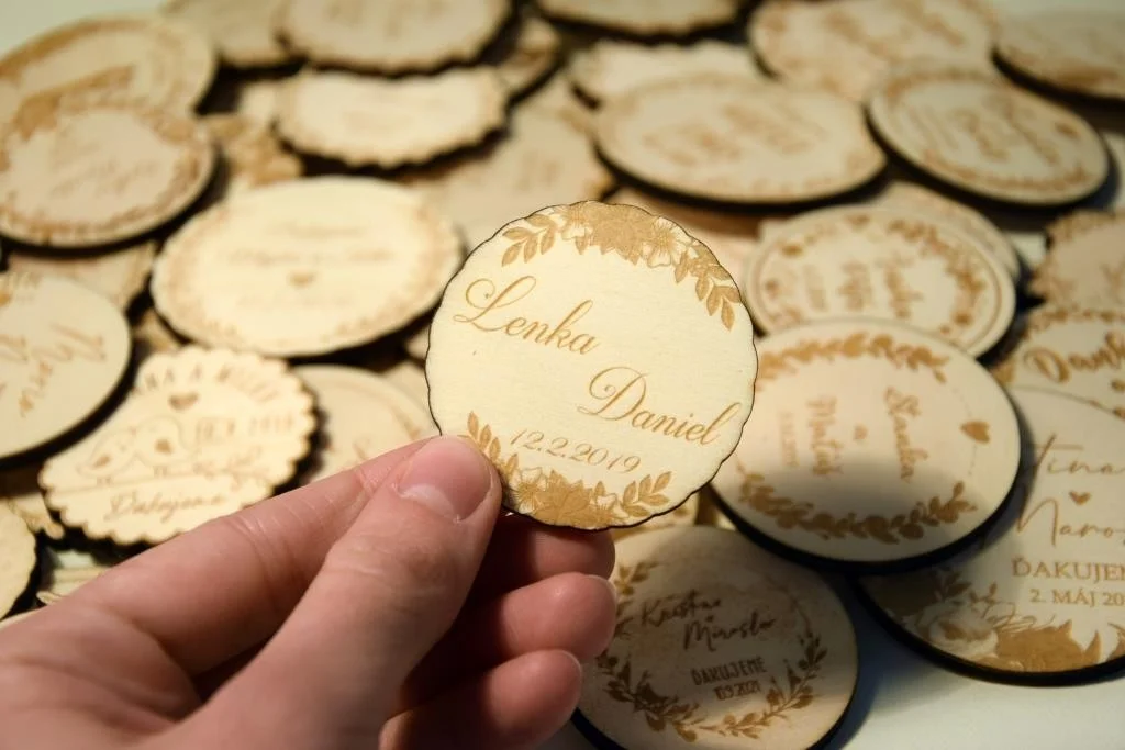 Všetky magnetky vyrábame pre Vás na mieru, preto pri objednávke nezabudnite napísať menáa dátum Vašej svadby.