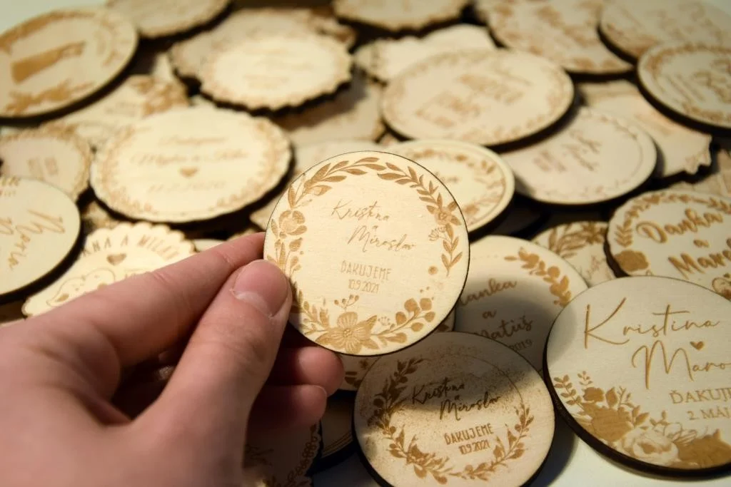 Všetky magnetky vyrábame pre Vás na mieru, preto pri objednávke nezabudnite napísať menáa dátum Vašej svadby.