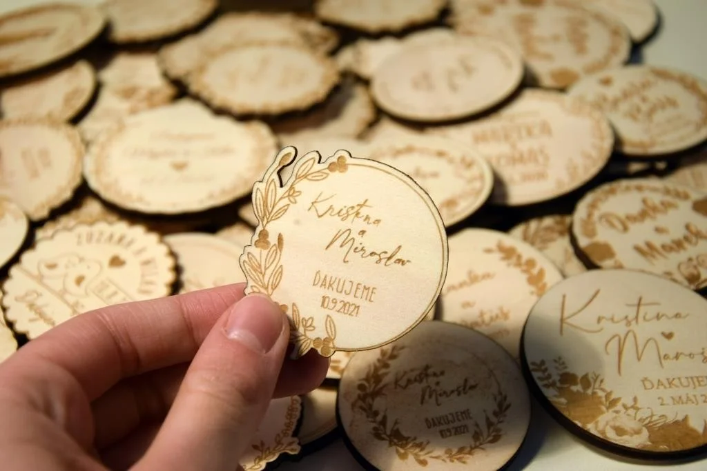 Všetky magnetky vyrábame pre Vás na mieru, preto pri objednávke nezabudnite napísať menáa dátum Vašej svadby.