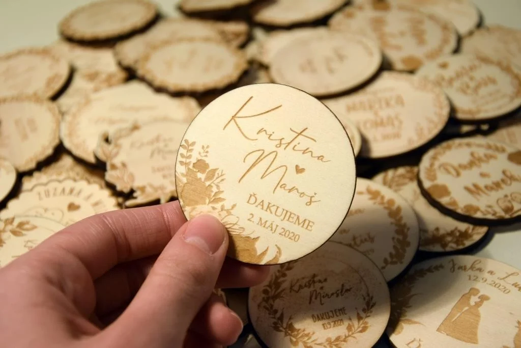 Všetky magnetky vyrábame pre Vás na mieru, preto pri objednávke nezabudnite napísať menáa dátum Vašej svadby.