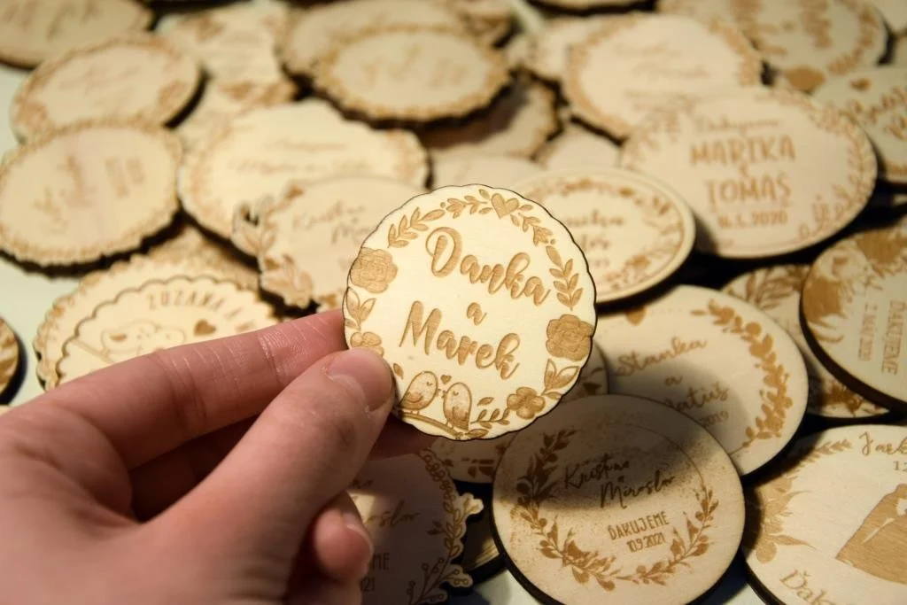 Všetky magnetky vyrábame pre Vás na mieru, preto pri objednávke nezabudnite napísať menáa dátum Vašej svadby.