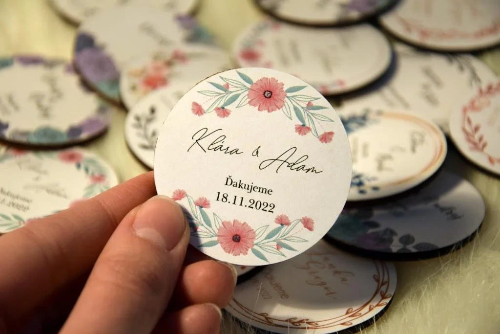 Všetky magnetky vyrábame pre Vás na mieru, preto pri objednávke nezabudnite napísať menáa dátum Vašej svadby.