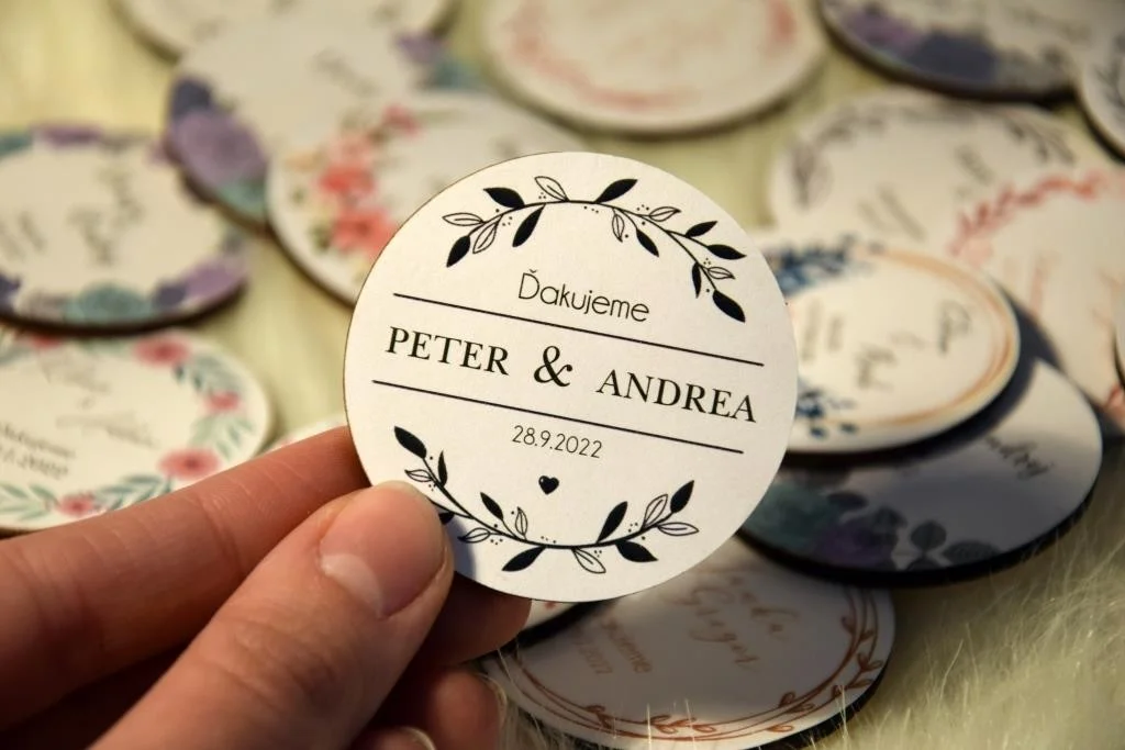 Všetky magnetky vyrábame pre Vás na mieru, preto pri objednávke nezabudnite napísať menáa dátum Vašej svadby.
