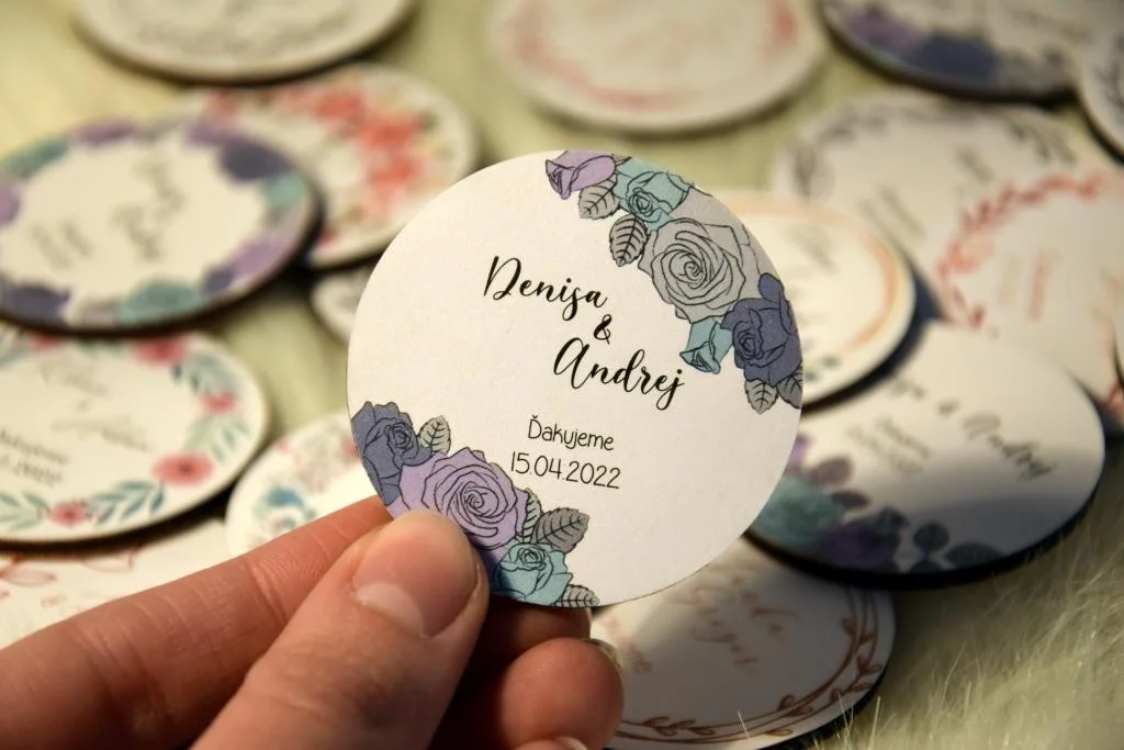 Všetky magnetky vyrábame pre Vás na mieru, preto pri objednávke nezabudnite napísať menáa dátum Vašej svadby.
