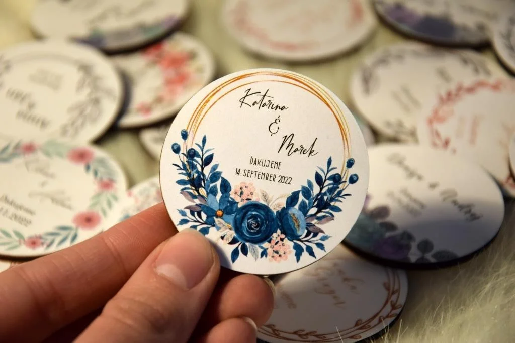 Všetky magnetky vyrábame pre Vás na mieru, preto pri objednávke nezabudnite napísať menáa dátum Vašej svadby.