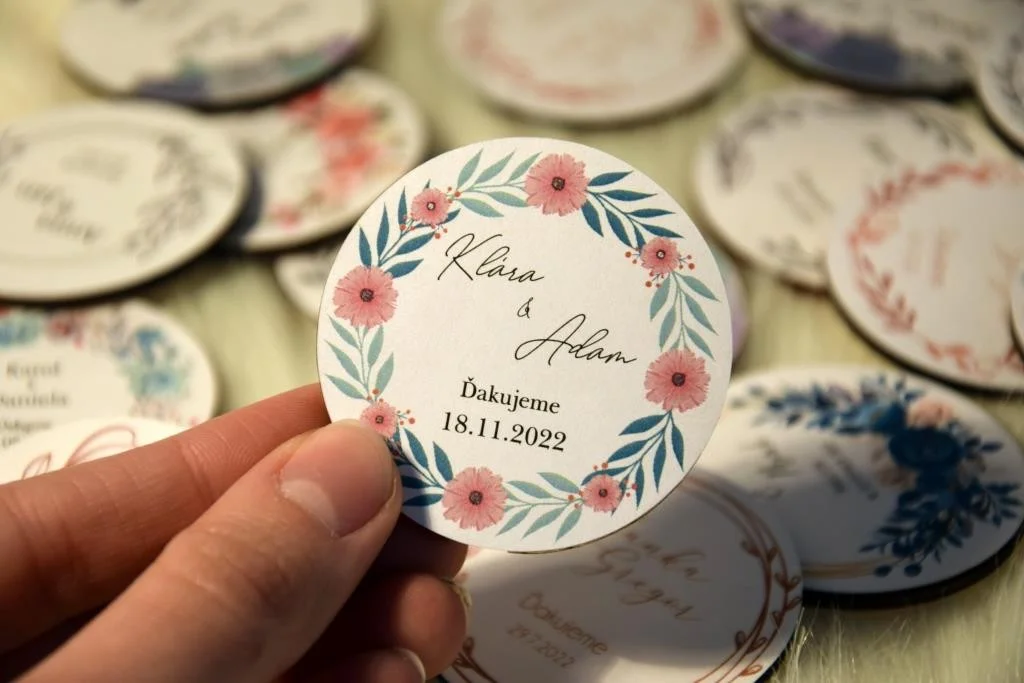 Všetky magnetky vyrábame pre Vás na mieru, preto pri objednávke nezabudnite napísať menáa dátum Vašej svadby.