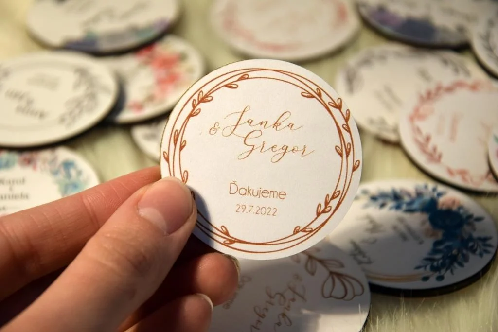 Všetky magnetky vyrábame pre Vás na mieru, preto pri objednávke nezabudnite napísať menáa dátum Vašej svadby.
