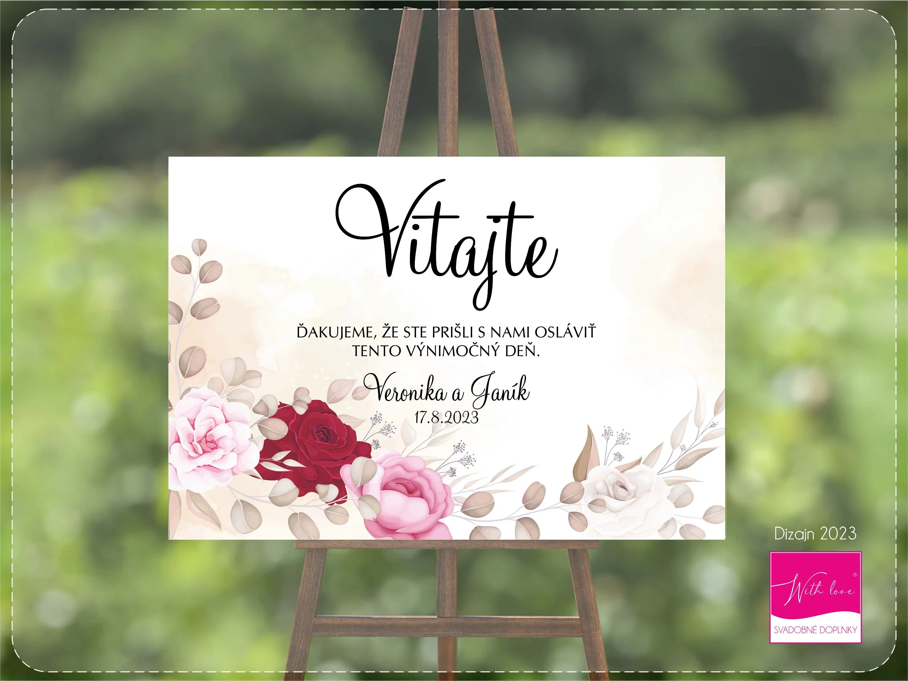 Privítajte svojich hostí elegantne hneď pri vstupe. Naša plastová svadobná uvítacia tabuľa vo formáte A3 (29,7 × 42 cm) alebo A2 (42 × 59,4 cm) sa stane krásnym detailom, ktorý dotvorí atmosféru vášho veľkého dňa.