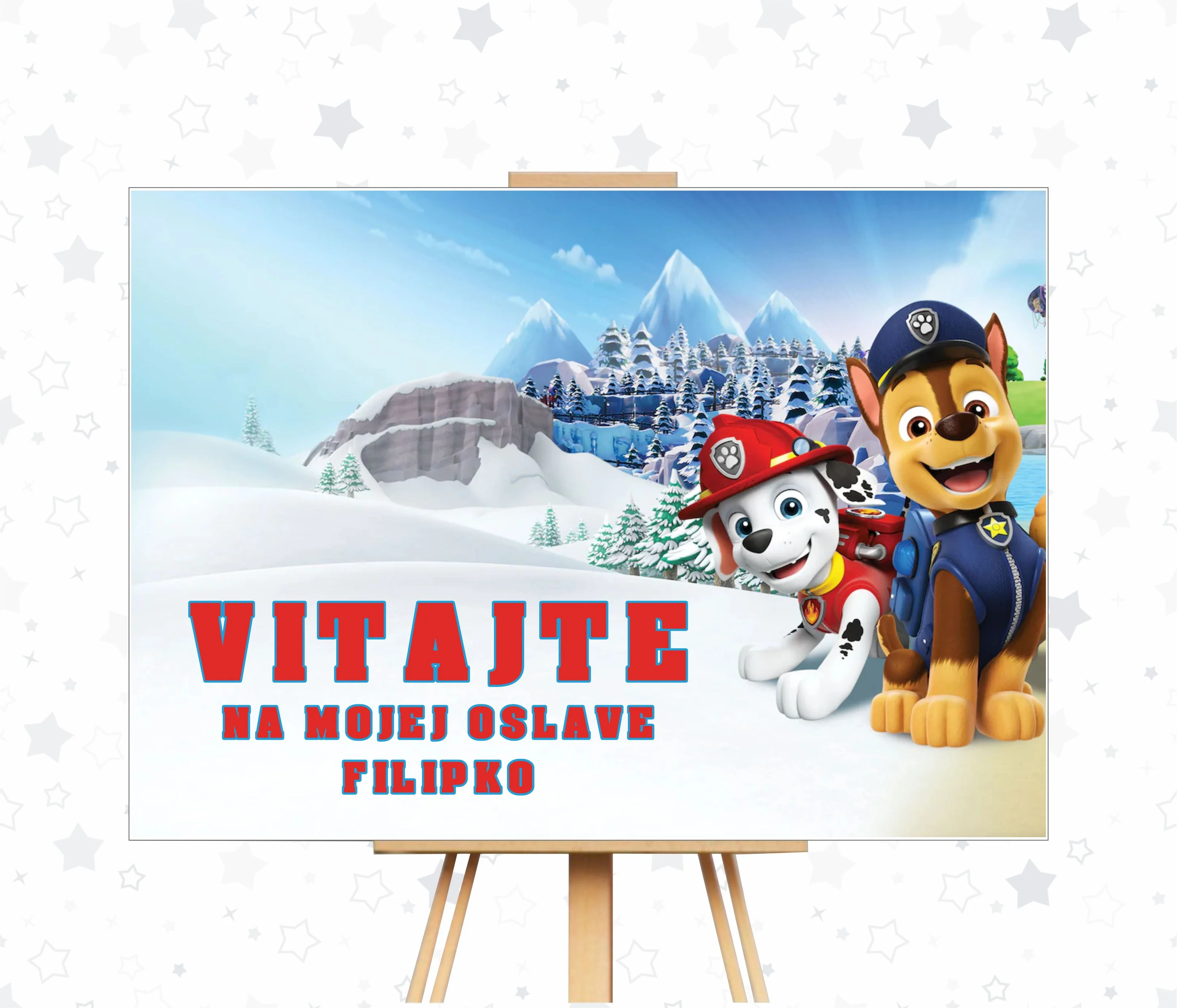 Uvítacia tabuľa s názvom tlapková patrola je vynikajúcim doplnkom pre každého fanúšika tlapkovej patrolky. Tabuľa je vyrobená z kvalitných materiálov a prezentuje ikonicképostavičky z tlapkovej patrolky, ako napríklad Ryder, Chase, Marshall, Skye, Rocky, Rubble a Zuma. Tabuľa je dostatočne veľká na to, aby ste ju mohli umiestniť kdekoľvek vo vašom dome, aby ste si mohli vychutnať jej vysoké kvality a príjemnú výzdobu.