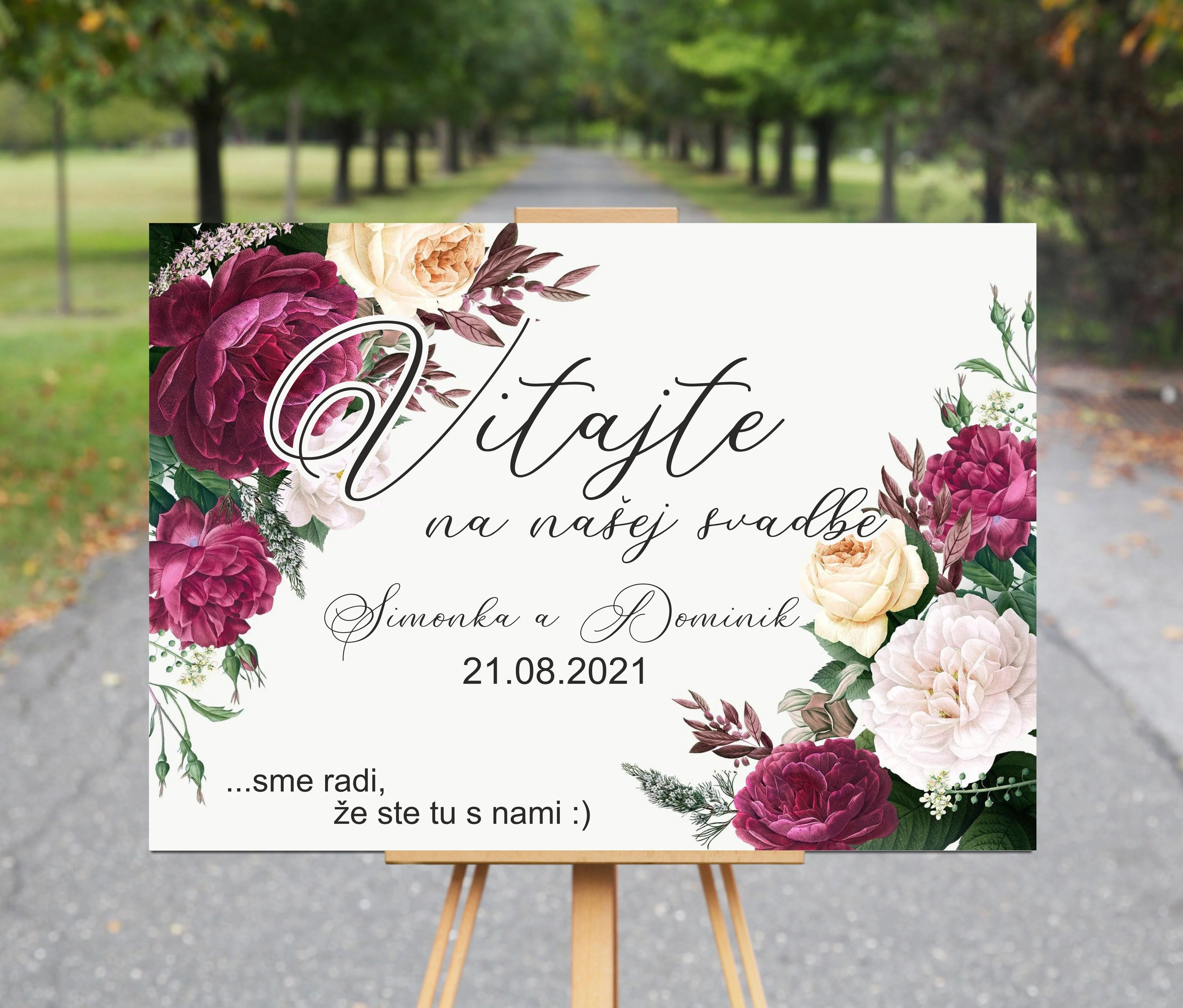 Uvítacia tabuľa - privítajte Vašich hostí štýlovo! Tabuľu prispôsobím podľa Vašich požiadaviek. Fólia je aplikovaná na na PVC dosku, vhodné na vnútorné i vonkajšie použitie. Veľkosť: A3, A2 A3 - šírka 42 cm / 29,7 cm ( S ) A2 - šírka 42 cm / výška 59,4 cm ( M )  *** STOJAN NIE JE SÚČASŤOU TABULE !! celý popis