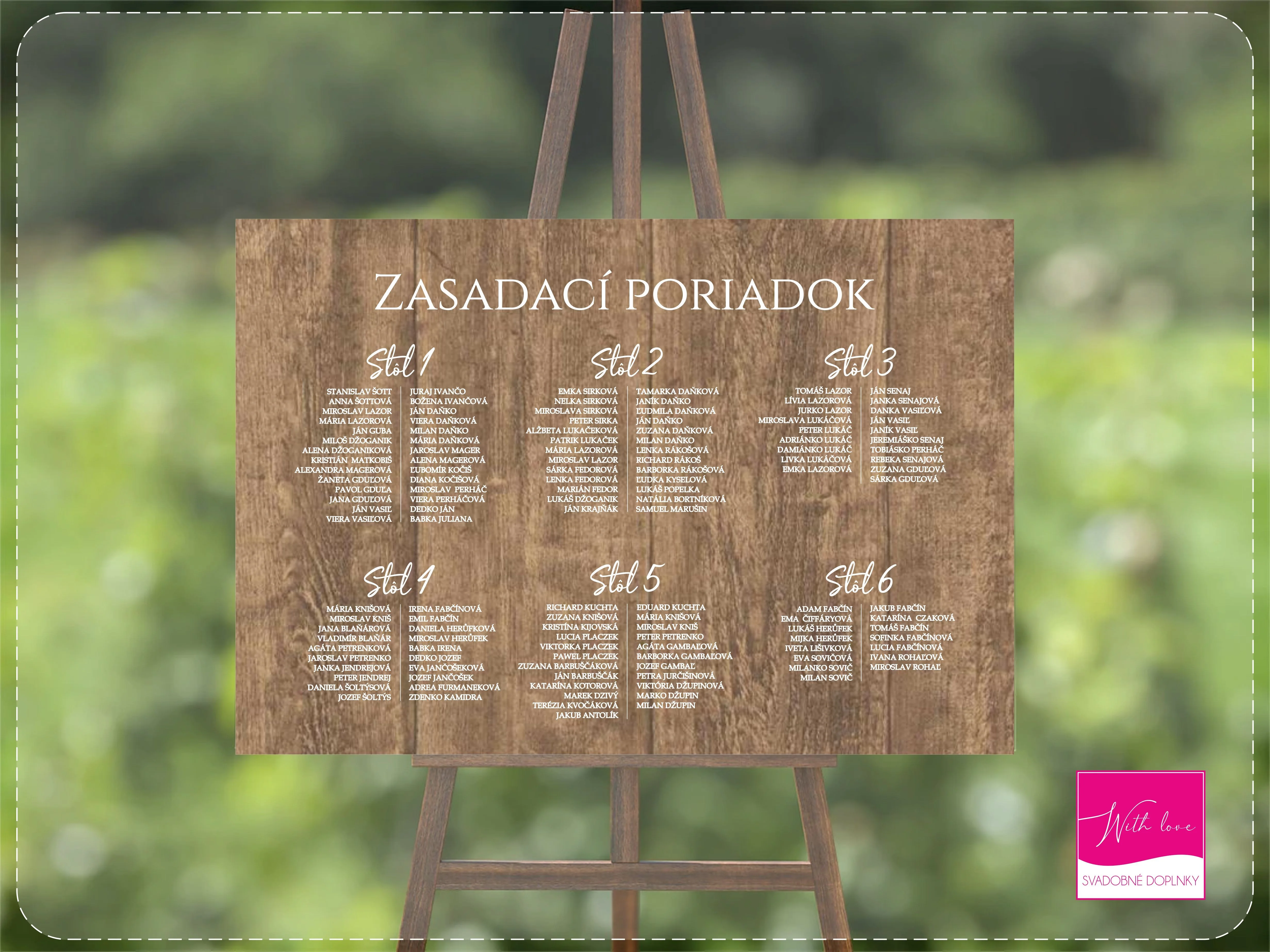 Zasadací poriadok je dôležitým artiklom pri organizovaní svadieb, ktoré sú väčšieho charakteru. Umožní hosťom správne sa zorientovať. S radosťou pre vás spracujeme aj v rovnakom motíve ako vaše ostatné tlačoviny a to nie len na svadbu ale aj akúkoľvek inú oslavu. A3 - šírka 42 cm / 29,7 cm ( S ) A2 celý popis