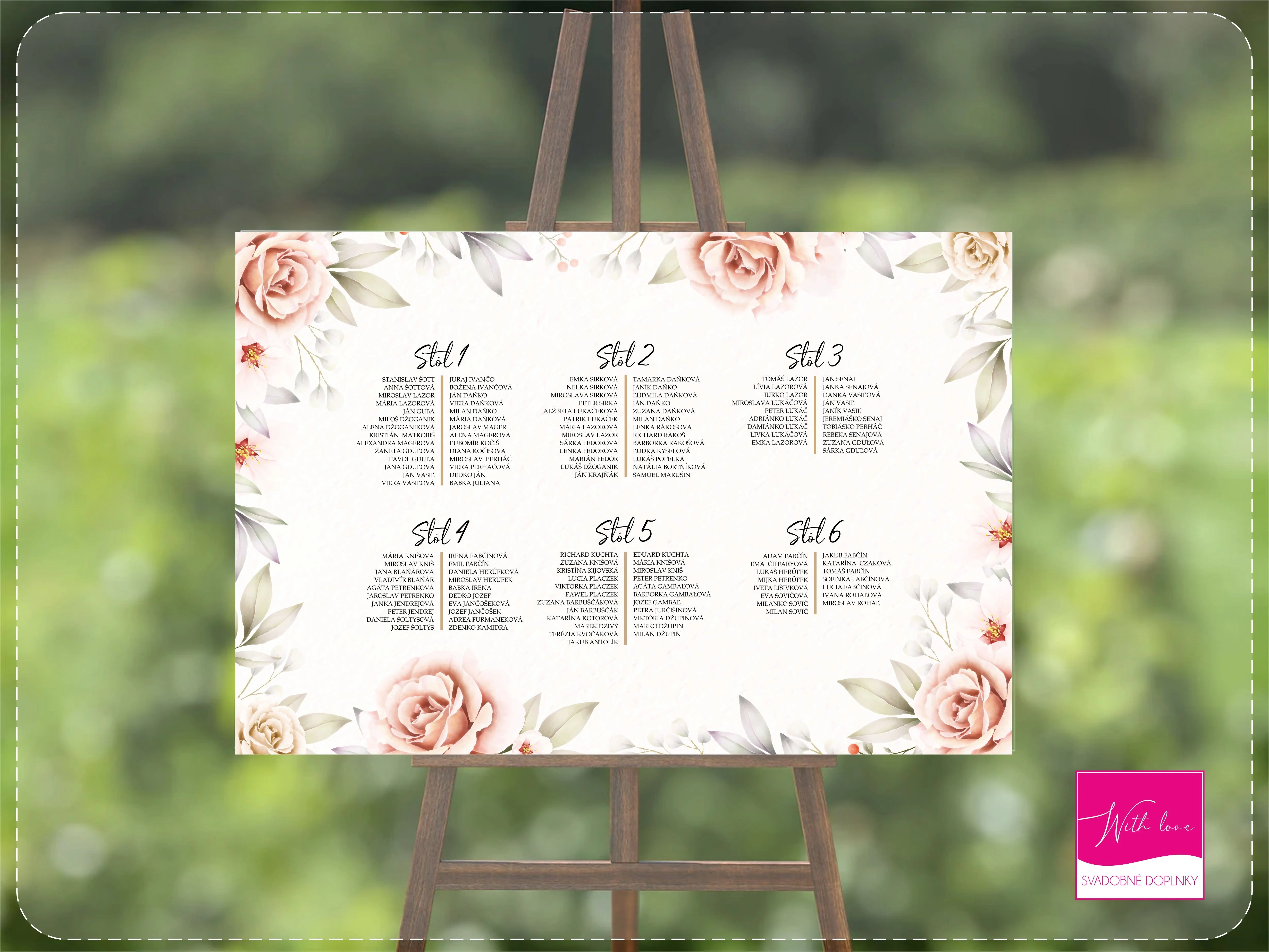 Zasadací poriadok je dôležitým artiklom pri organizovaní svadieb, ktoré sú väčšieho charakteru. Umožní hosťom správne sa zorientovať. S radosťou pre vás spracujeme aj v rovnakom motíve ako vaše ostatné tlačoviny a to nie len na svadbu ale aj akúkoľvek inú oslavu. A3 - šírka 42 cm / 29,7 cm ( S ) A2 celý popis